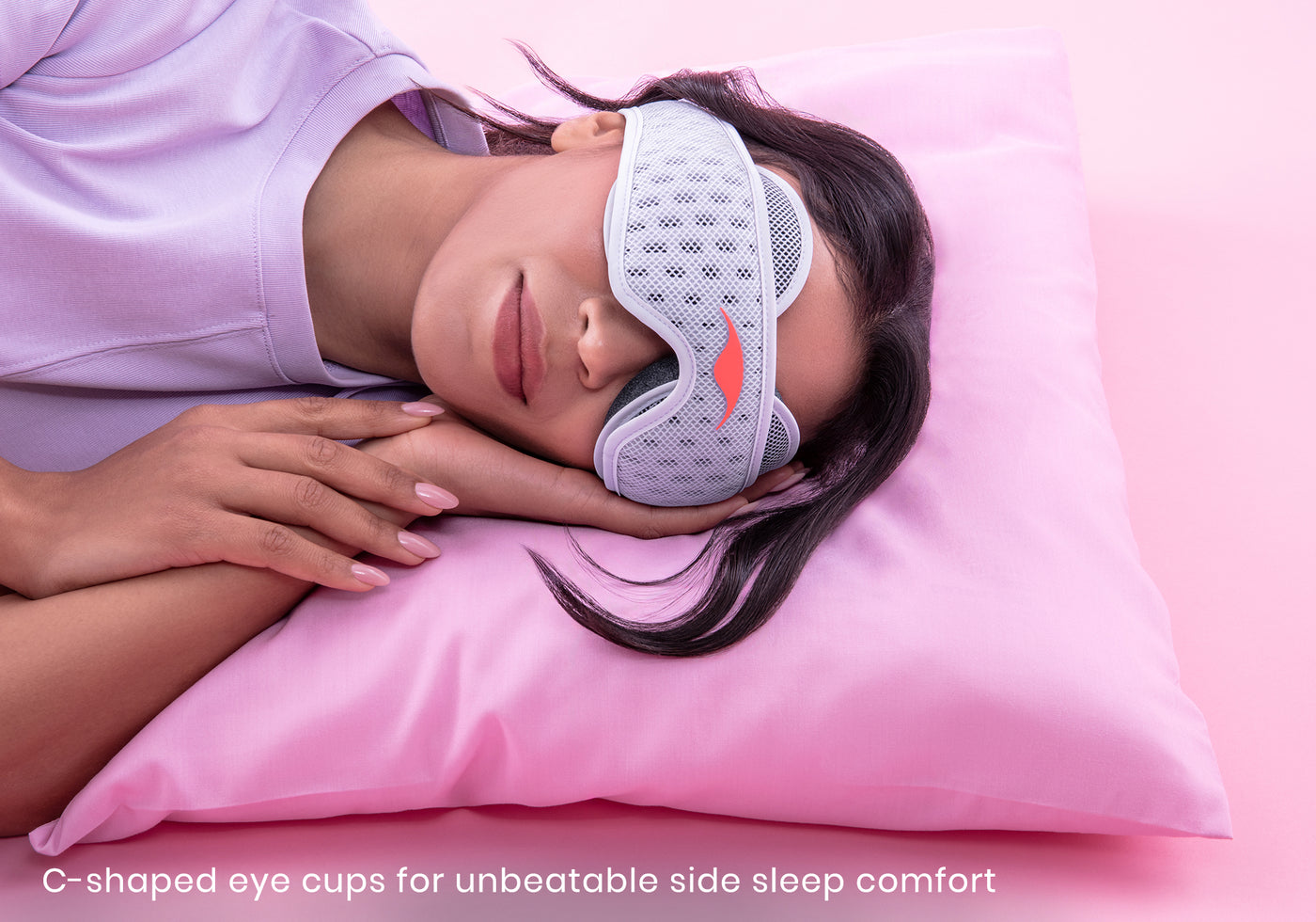 Uncompromisingly designed for side sleepers, PRO’s eye cups sit completely flat against your temple without sacrificing eye space. So there’s nothing between your head and your pillow.